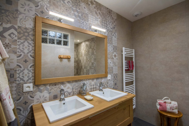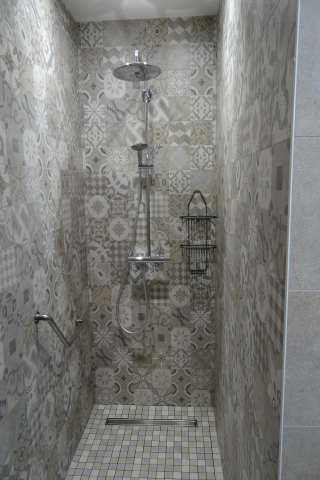 Grande salle de bain avec douche italienne de 1.60 x 1 m. WC adaptés PMR.